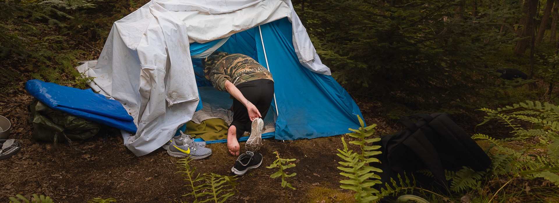 Jag är egentligen undersköterska, men just nu bor jag i ett tält och säljer Faktum. I vintras bodde jag på olika härbärgen. Innan dess hade jag bott på ett skyddat boende eftersom jag blev misshandlad av min före detta sambo som också gjorde mig beroende av droger. När jag flyttade till Göteborg gick jag till socialtjänsten i centrum för att få hjälp eftersom jag hade skrivit mig hos en kompis i centrum. Han tar bara hand om mina katter, han bor i en etta, så där kan jag inte bo. Socialtjänsten hänvisade mig till Hisingen som hänvisade mig tillbaka till Centrum. Där sa de att jag inte kunde få hjälp eftersom jag hade fått in swishbetalningar på mitt konto och då räknas det som en inkomst.