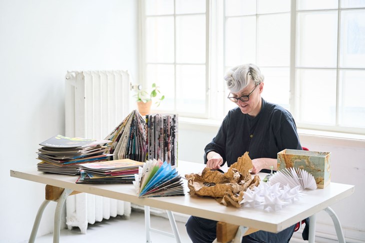 Hon säger att konstbranschen inte ville ha henne först, modebranschen hade hon lämnat och slöjdarna var inte imponerade av hennes skulpturer i papper, tyckte att hon var för slarvig. Konsthantverkarna tog henne för galen.