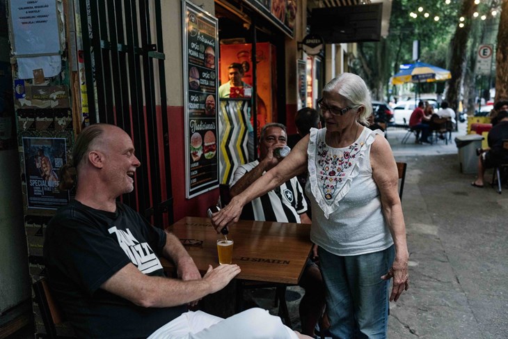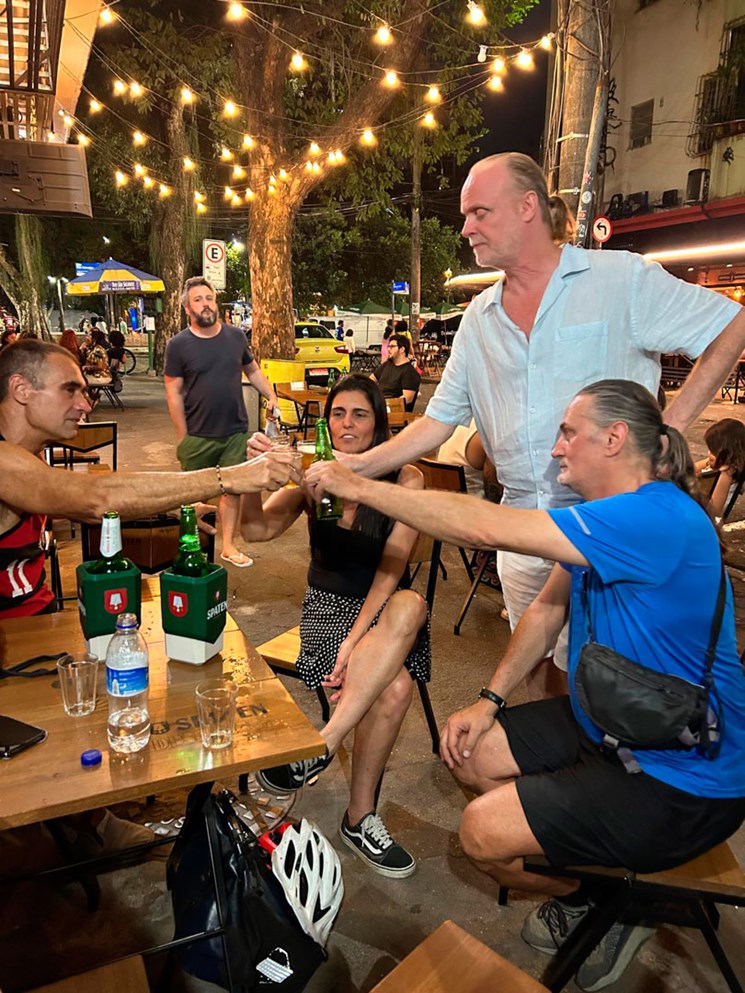 På detta förhållandevis välordnade torg har nu helgens firande inletts som om där inte fanns någon måndag morgon. Henrik hälsar runt vid de olika borden på uteserveringen, träffar vänner och bekanta, beställer in öl till dem. Bland andra den amerikanske frilansfotografen Douglas Engle och det svensk-brasilianska paret Daniel Ribeiro Gonçalves och Celeste Costa. Det är livlig stämning innan klockan slagit 18 och festen ska pågå många timmar till. Söndagar är grejen här.