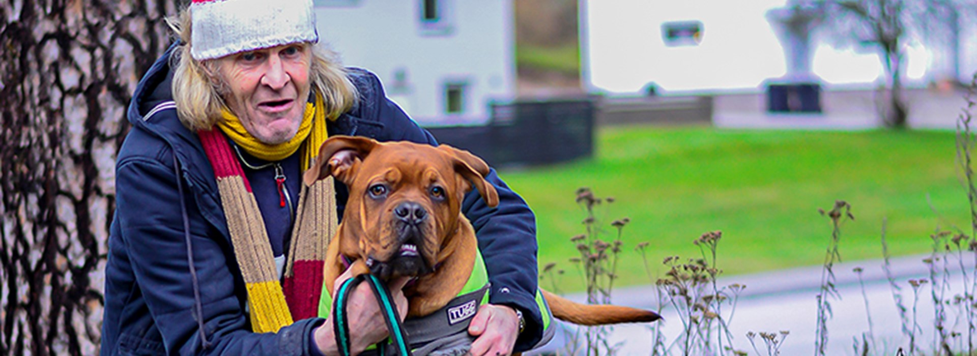 För åtta år sedan skaffade jag en hund, en Doueg de Bordeaux. Hon hette Laika och var alltid med på min försäljningsplats. I somras dog hon i mina armar, hjärtat bara stannade. Laika betydde allt för mig. På P4 Kronoberg berättade de om vad som hade hänt och då var det snälla människor som samlade in 20 000 kronor till mig för att köpa en ny valp. Samma ras som Laika. Vi hämtade Bonzo på Marstrand när han var tolv veckor. Det var kärlek vid första ögonkastet. I dag är han sex månader och väger 30 kilo. Jag har fått en ny livskamrat!